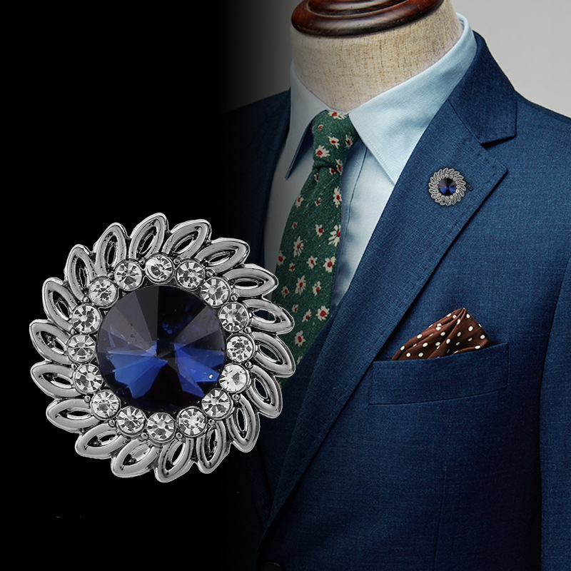 High-end Rhinestone Crystal Brooch Pins Fashion Men's Shirt Suit Brooches Corsage Ladies Collar Pin Luxulry Jewelry Accessories